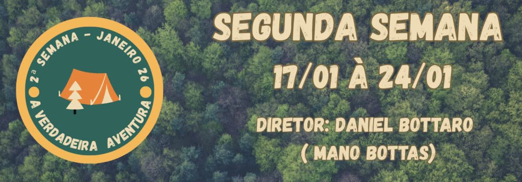 O objetivo da semana é mostrar uma ordem cronológica de alguns acontecimentos bíblicos desde a criação do mundo até o período da igreja. Uma verdadeira aventura pela Bíblia! Isso será feito com aulas bíblicas, brincadeiras, oficinas e noites temáticas.